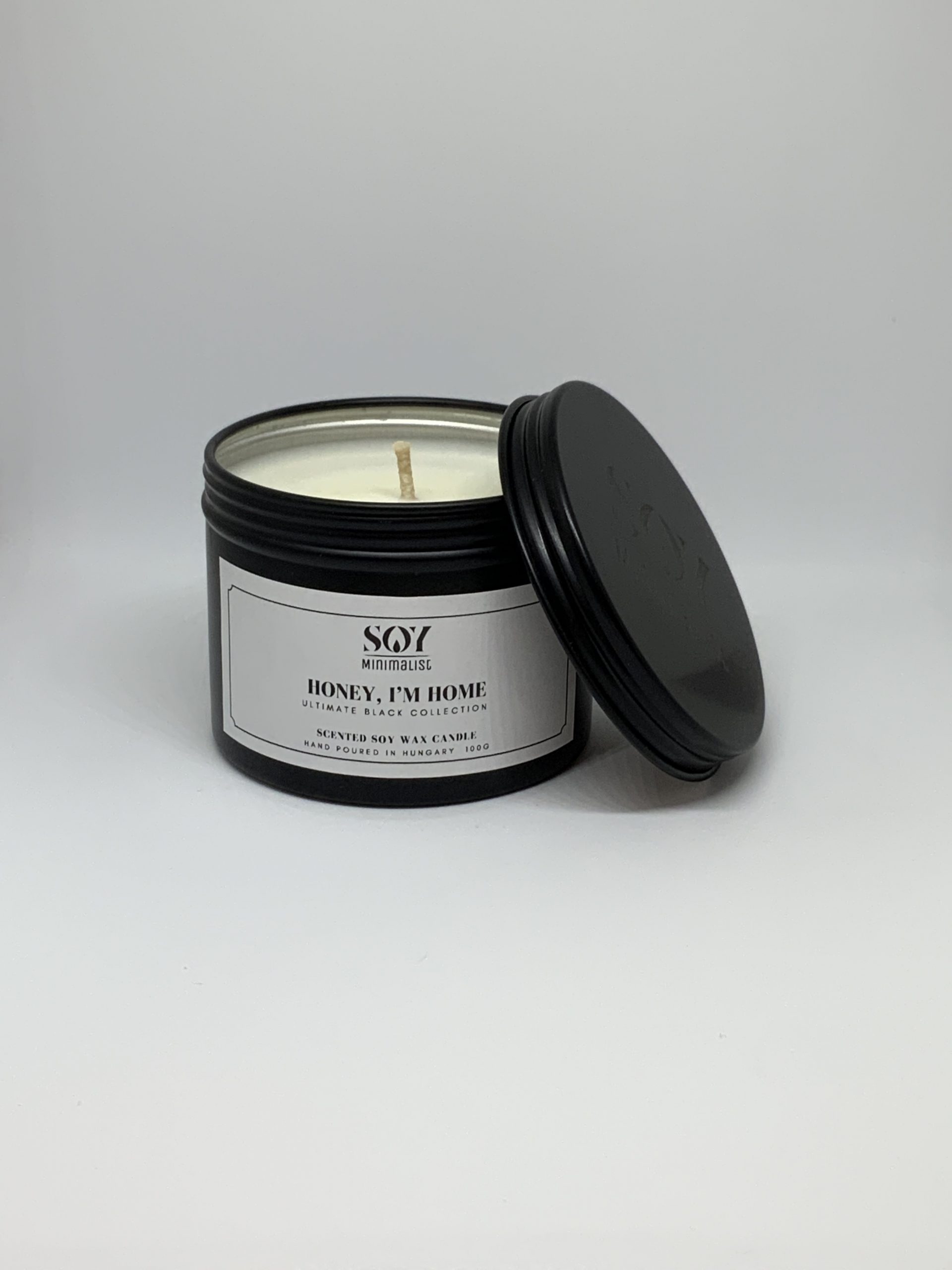 Egyedi gravírozás kérhető az alumínium tégely fekete fedelének tetejére – amennyiben nem kérsz gravírozást, a termék SoyMinimalist logóval gravírozva érkezik.